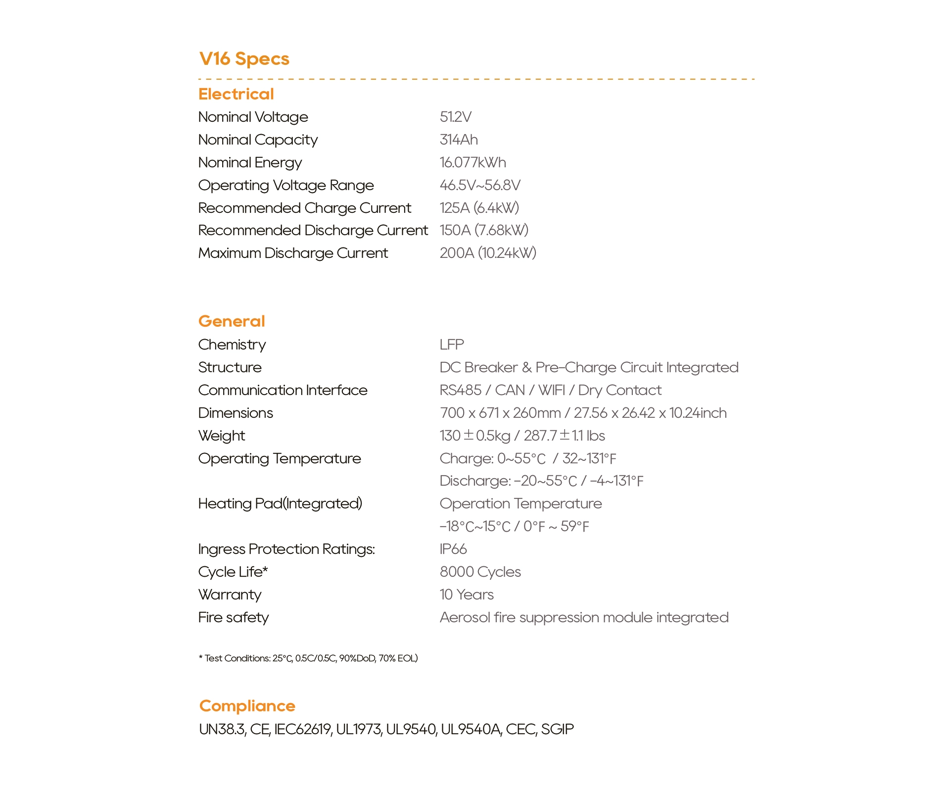 | UN38.3, CE, IEC62619, UL1973, UL9540, UL9540A, CEC, SGIP |